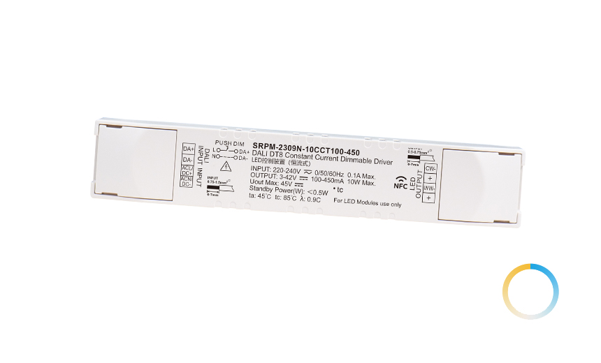 | DALI | 2通道 | 3-42V | 100-450mA via NFC setting; 最低設置電流檔位間隔低至 0.1mA | 220-240VAC | 最大10W | > 0.93 | 121*22.7*21mm(長*寬*高) |