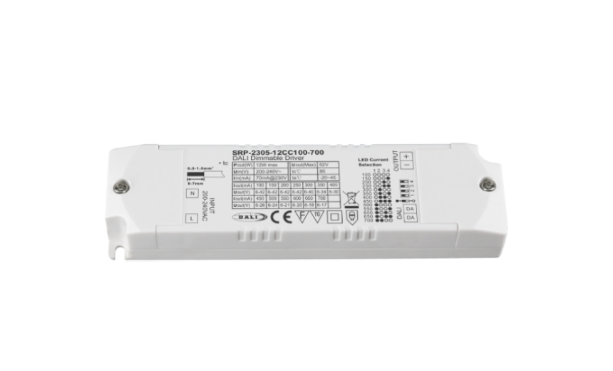 DALI單通道6-52V100mA-700mA撥碼選擇,每50mA一檔200-240V12W>0.95