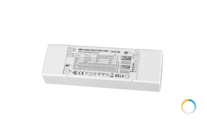 | DALI | 2通道 | 8-55V | 250mA-1000mA撥碼選擇,每50mA一檔 | 200-240V | 30W | >0.90 | 170*53.4*28mm(長*寬*高) |