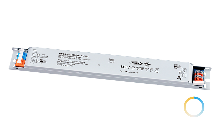 LED調(diào)光電源,最大輸出功率50W,輸入電壓120-277V,內(nèi)置DALI-2接口,DALI DT8設(shè)備